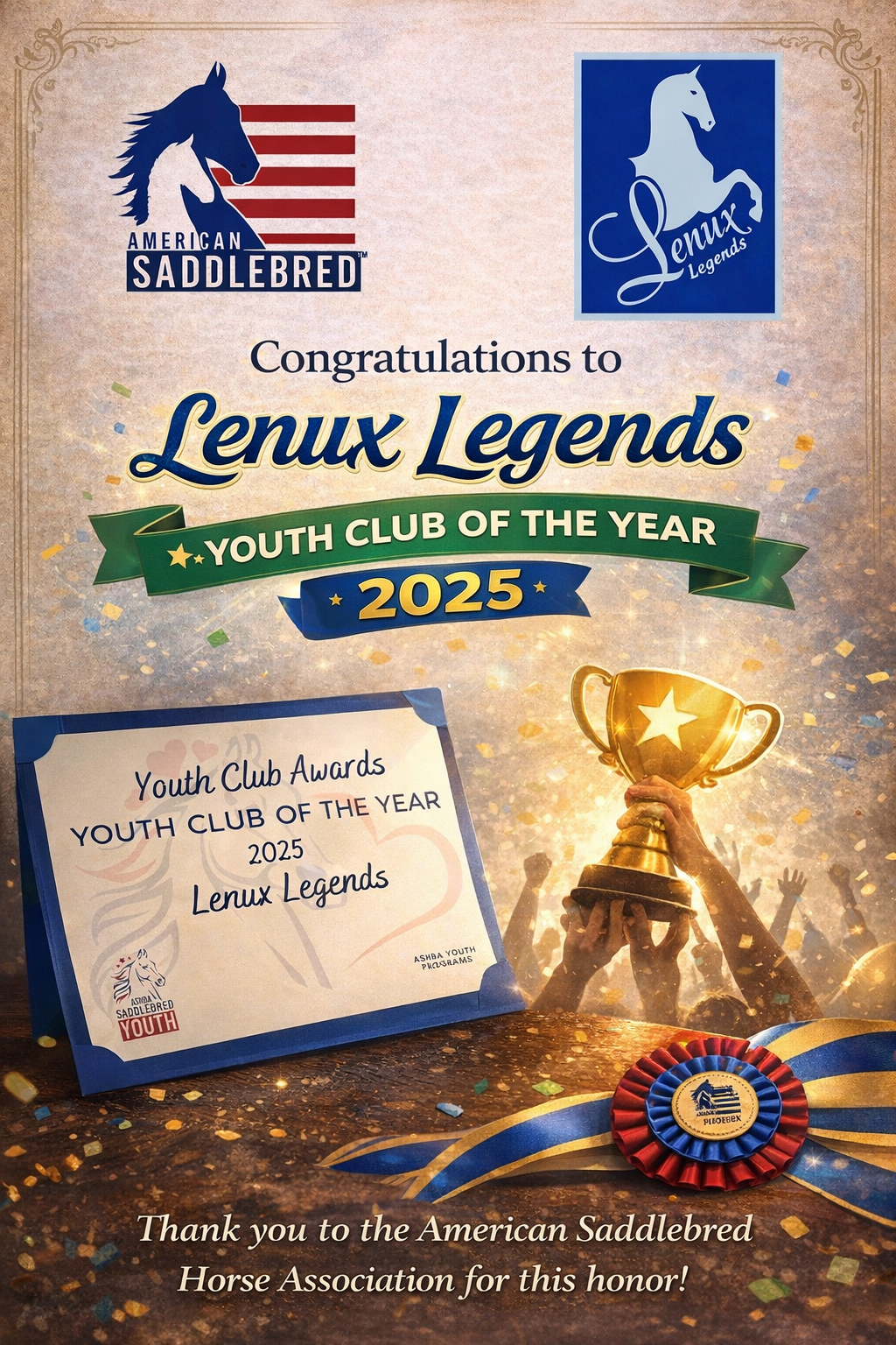 In addition to receiving the 2025 Community Barn Award, the Lenux & Lakeside Legends Youth Club was recognized with two other awards. The Legends are honored to have been awarded the 2025 Youth Club of the Year Award and the Youth Club Fundraising Award for 2025, as well. We are honored and are extremely proud of our Lenux & Lakeside Legends Youth Club members for their efforts throughout the year.